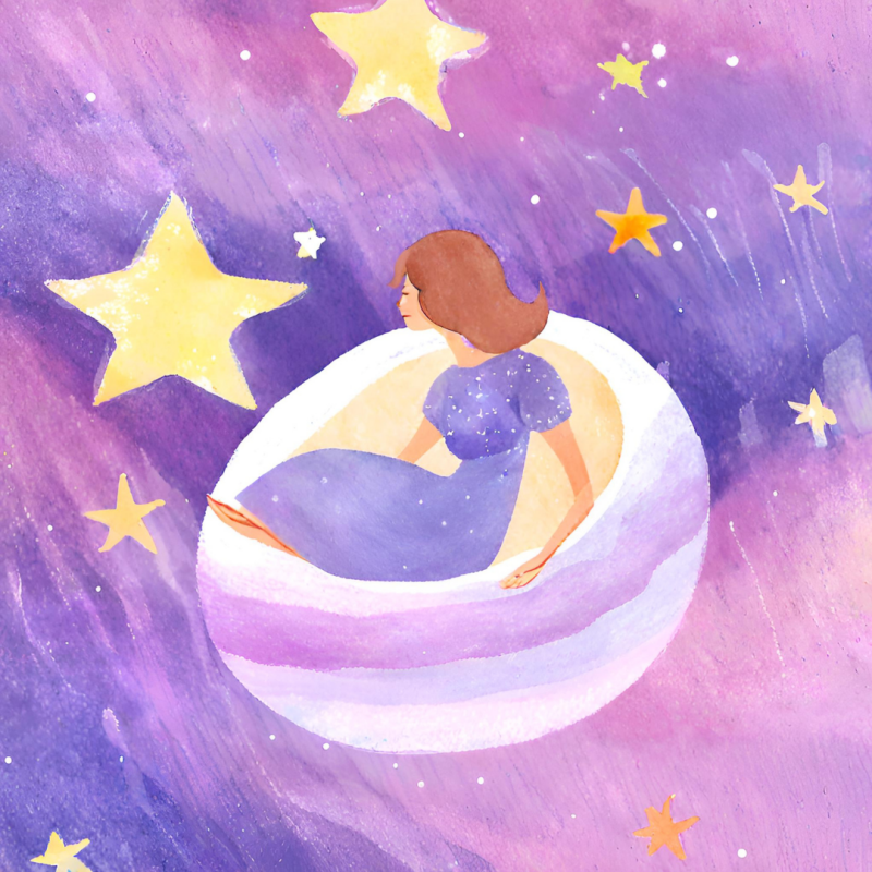 Mientras flotaba pacíficamente en la vasta extensión del espacio, conciente me imaginaba rodeada de una energía protectora que tomaba la forma de un huevo. Me sentía abrazada por un calor color blanco, suave y reconfortante. Podría estar allí relajada por horas, como cuando haces planchita en el agua. Sin embargo, la sensación armoniosa gradualmente comenzó a disiparse y surgió una molestia en mi espalda. Entonces, aparece una visión remota, tercera. Un ojo de mi conciencia que se separa del huevo y me puedo ver adentro de esa hermosa energía, flotando en el universo, como en el vientre de mi madre. Mi mirada vuelve a enfocarse desde un espacio superior y veo que de mi espalda salían numerosas redes de aspecto biológico luminiscente. Una especie de tejido venoso vivo y en movimiento que transportaba corrientes eléctricas. En ese momento, me di cuenta de que estos eran mis cables de conexión a la matriz artificial.